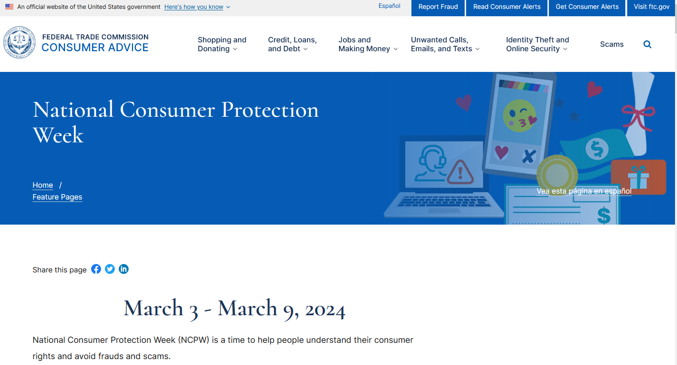 Of course it also helps when we are in the National Consumer Protection Week (March 3rd to March 9th) FTC.gov website link .