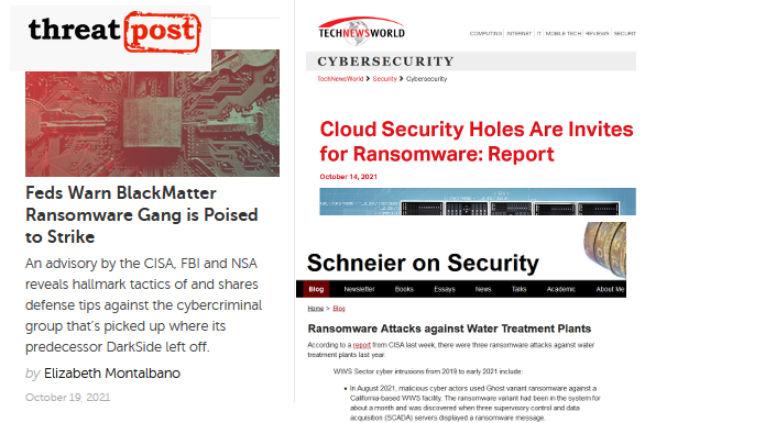 The third article is at Schneier on Security: Ransomware Attacks against Water treatment Plants