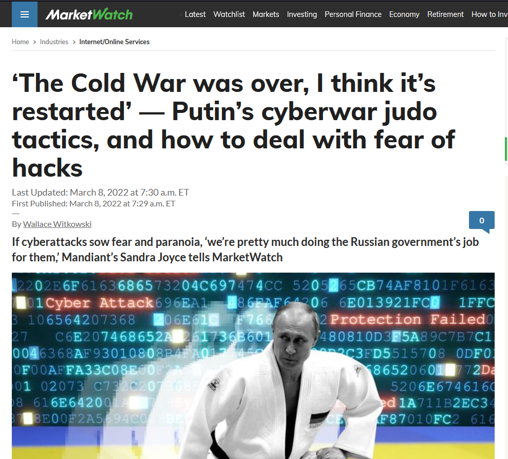 MarketWatch (a financial news site has this story about Putin and his thirst for Cyberwarfare – restarting the Cold War.