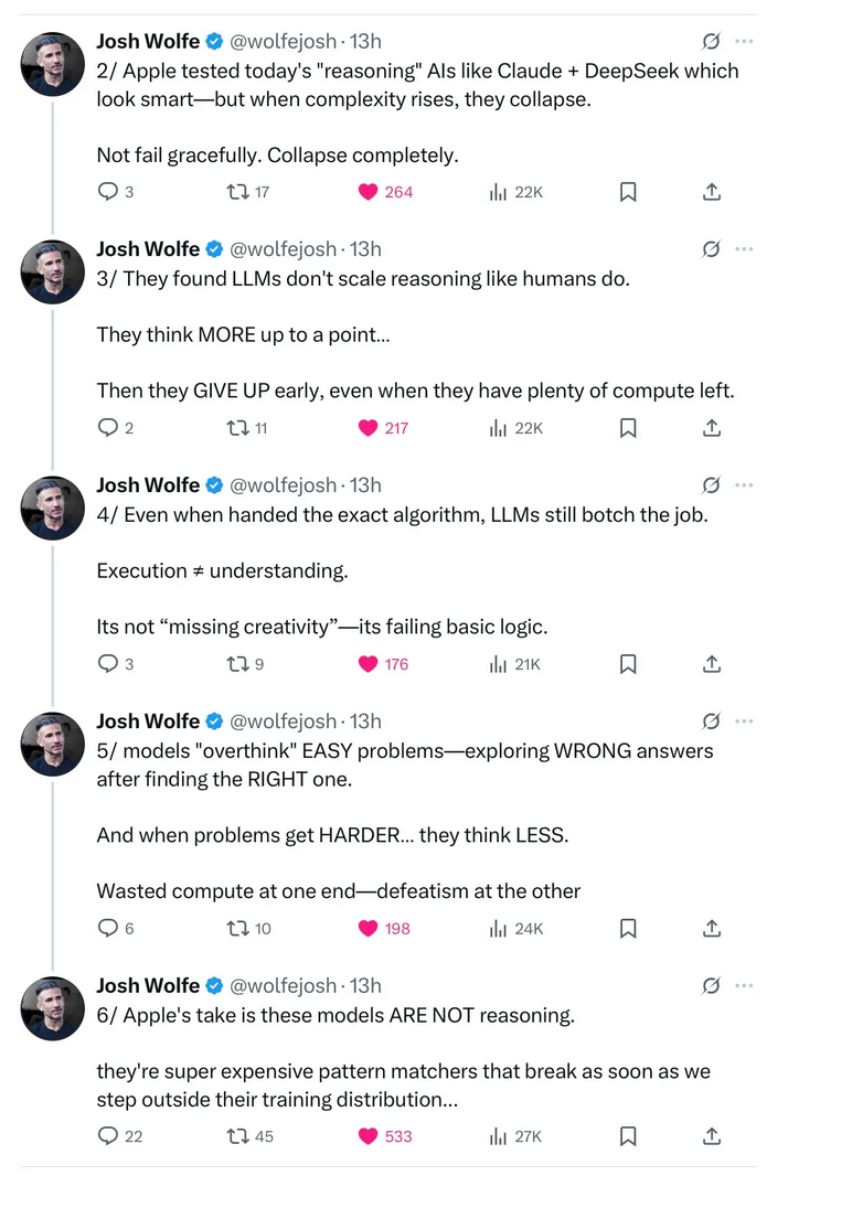 Fail at algorithmic tasks (e.g., Tower of Hanoi) |