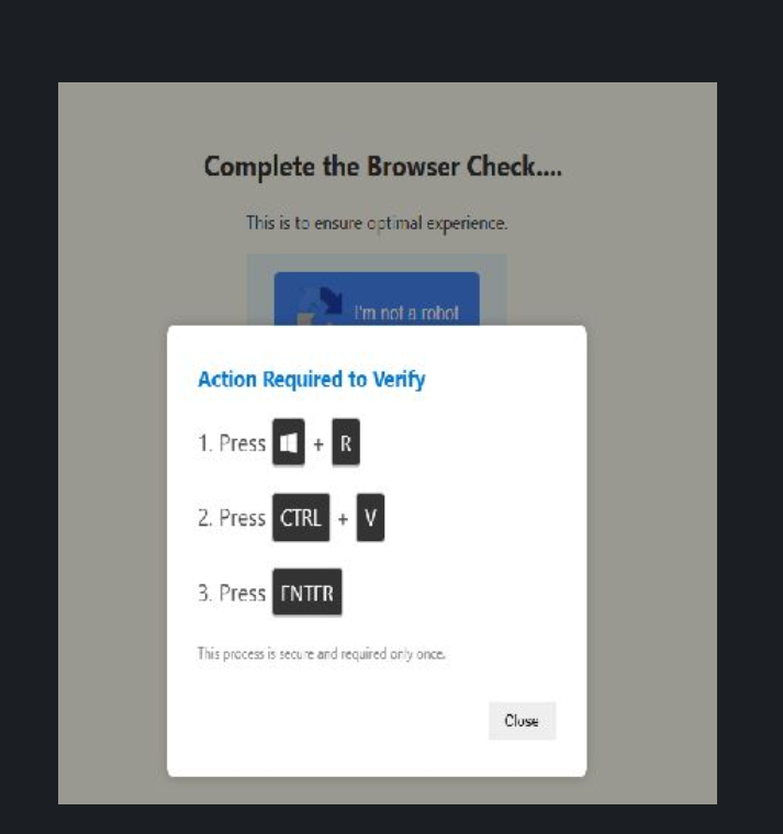 A site popped this “I’m not a Robot check”. The site injected a command to my clipboard and is trying to convince me to run it.